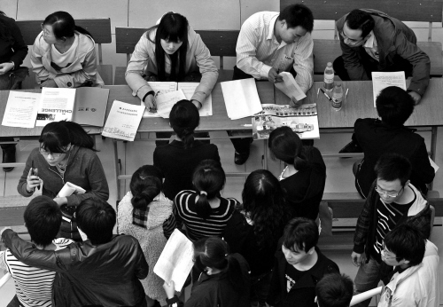 本報(bào)訊 昨天一大早,嘉興職業(yè)技術(shù)學(xué)院圖文信息中心前人頭攢動(dòng),來(lái)自嘉興各縣(市、區(qū))及杭州、湖州等周邊地區(qū)共450多家企業(yè)“涌”進(jìn)校園攬才,近8000個(gè)崗位虛位以待。與以往不同的是,前來(lái)攬才的企業(yè)更傾向于招聘技術(shù)和管理類(lèi)人才,而畢業(yè)生則更看重企業(yè)對(duì)個(gè)人今后發(fā)展的空間。
