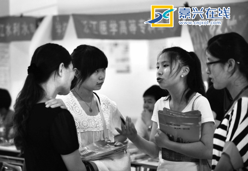 本報(bào)訊 昨天上午,來(lái)自省內(nèi)外的52所高職高專院校云集嘉興職業(yè)技術(shù)學(xué)院,擺攤設(shè)點(diǎn),舉行2012年高校招生暨考生填報(bào)志愿咨詢會(huì),2000余名考生和家長(zhǎng)早早地來(lái)到二號(hào)樓網(wǎng)絡(luò)信息中心門口,咨詢第三批高考志愿填報(bào)的相關(guān)院校信息。