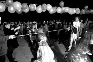 昨晚,在嘉興職業(yè)技術(shù)學(xué)院外語與貿(mào)易學(xué)院里,學(xué)生和外教一起戴著面具狂歡。