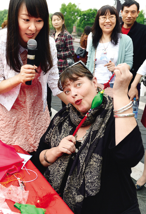 昨天上午,“五彩香囊迎端午”民間香囊制作大賽在市區(qū)梅灣街舉行,現(xiàn)場(chǎng)有20戶中外家庭學(xué)做香囊,這名來(lái)自澳大利亞的女士正展示學(xué)做的香囊。