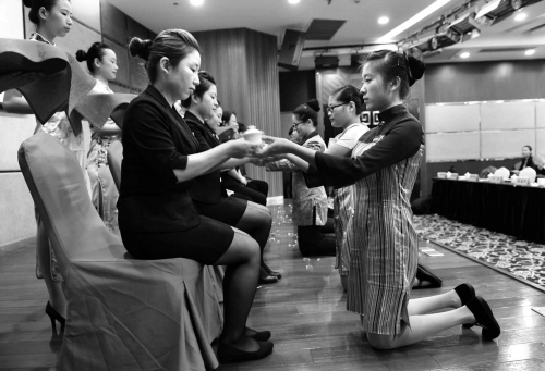 昨天下午,嘉興市欣禾職教集團(tuán)?聚酒店管理學(xué)院揭牌成立,嘉職院2012級酒店管理專業(yè)的12名學(xué)生參加師帶徒結(jié)對儀式,學(xué)生們向服務(wù)行業(yè)的前輩敬茶跪拜行拜師禮。據(jù)悉,這是欣禾職教集團(tuán)打造的第三個產(chǎn)學(xué)共同體。