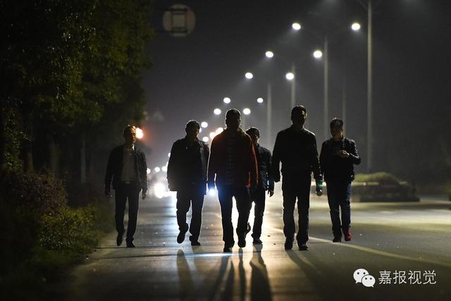小步(中)和村里黨員志愿者一起夜間巡邏。