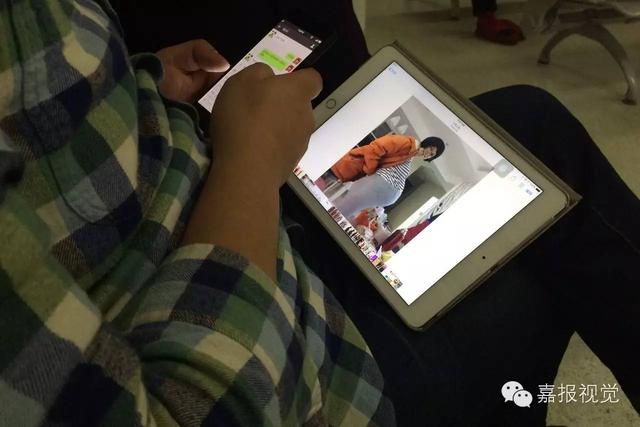 1月24日,產(chǎn)房外等待的小步拿出IPad看老婆的大肚照,并不時(shí)給她發(fā)鼓勵(lì)短信。