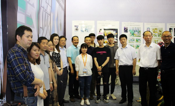嘉興市委常委、宣傳部長(zhǎng)祝亞偉(右三)、市人大常委會(huì)副主任陳越強(qiáng)(右二)參觀嘉興職業(yè)技術(shù)學(xué)院紡織與藝術(shù)設(shè)計(jì)分院廣告設(shè)計(jì)專業(yè)優(yōu)秀畢業(yè)生作品展后,諄諄寄語(yǔ)畢業(yè)生,并與該分院院長(zhǎng)顧金孚(左七)等師生合影。