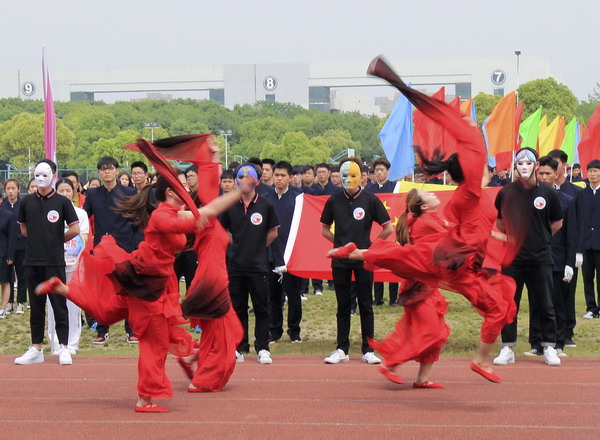 昨天下午,嘉興職業(yè)技術(shù)學(xué)院第18屆體育運(yùn)動(dòng)會(huì)上,紡織與藝術(shù)設(shè)計(jì)分院的學(xué)生們戴著手繪彩色面具在開幕式上列隊(duì)入場,并跳起“飛天”舞助興運(yùn)動(dòng)會(huì)。