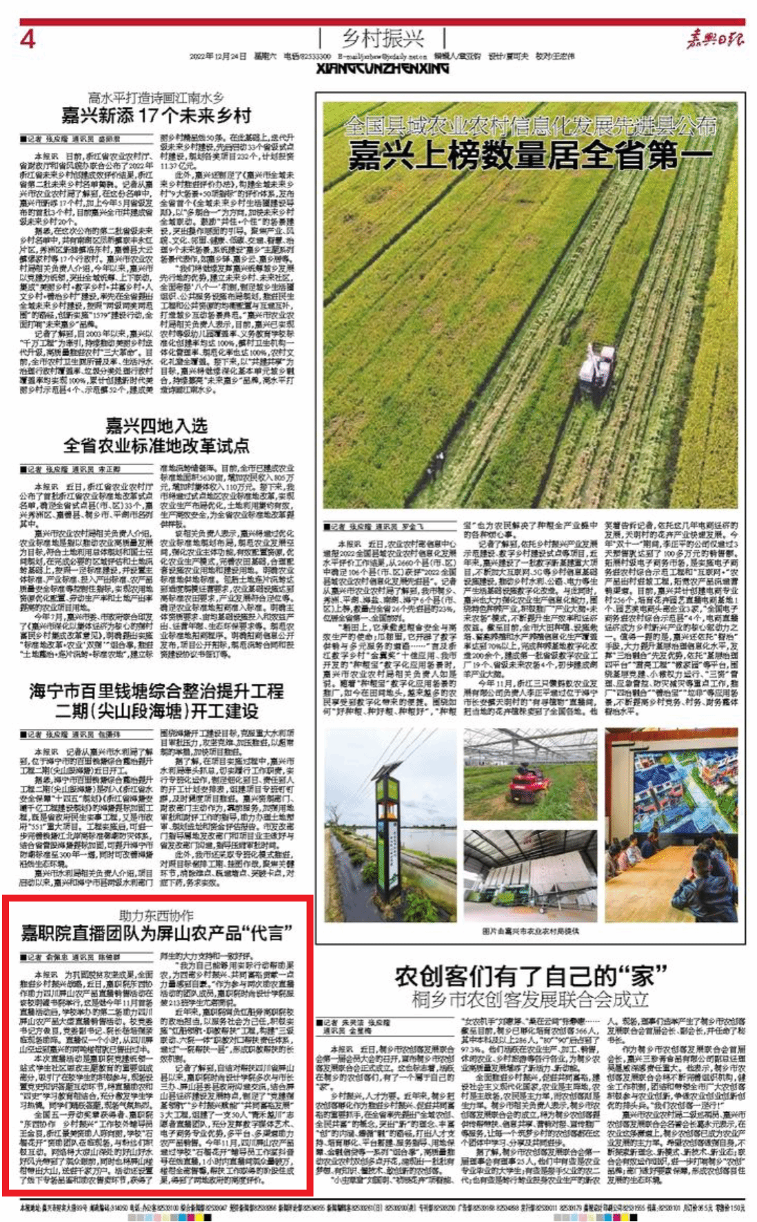記者了解到,自結(jié)對幫扶四川省屏山縣以來,嘉職院時尚設(shè)計學(xué)院多次與市長三辦、屏山縣委縣政府溝通交流,結(jié)合屏山縣經(jīng)濟建設(shè)發(fā)展特點,制定了“黨建強基領(lǐng)航”“鄉(xiāng)村振興賦能”“共同富裕發(fā)展”3大工程,組建了一支50人“青禾越川”志愿者直播團隊,充分發(fā)揮數(shù)字媒體藝術(shù)、電子商務(wù)專業(yè)優(yōu)勢,多平臺、多渠道助力農(nóng)產(chǎn)品銷售。今年11月,四川屏山農(nóng)產(chǎn)品通過學(xué)?!笆窕ㄩ_”輔導(dǎo)員工作室抖音號在線直播,1小時內(nèi)直播間觀眾量破萬,椪柑全部售罄,幫扶工作取得的階段性成果,得到了兩地政府的高度評價。