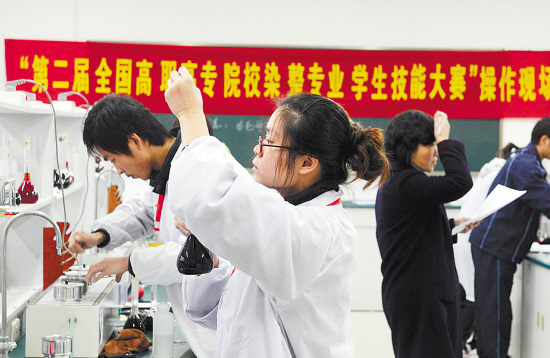 11月19日下午,第二屆全國(guó)高職院校染整專(zhuān)業(yè)學(xué)生技能大賽染整操作比賽在嘉興職業(yè)技術(shù)學(xué)院拉開(kāi)“戰(zhàn)事”。在4小時(shí)內(nèi)根據(jù)給定的色樣,染出符合給定小樣的染色樣,并寫(xiě)出染料組成、染色工藝及配方,成了擺在全國(guó)20多所紡織印染高等職業(yè)院校100多名專(zhuān)業(yè)大學(xué)生面前的考題。