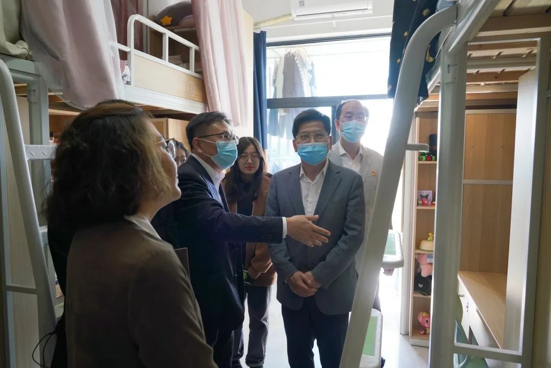 來到明德公寓,陳春雷走進輔導(dǎo)員工作室、學(xué)生寢室,與師生親切交談,詳細詢問學(xué)生學(xué)習(xí)生活情況,對學(xué)校推動黨建進學(xué)生社區(qū)、積極開展勞動教育的做法表示贊賞,高度評價學(xué)校為學(xué)生打造的高品質(zhì)生活環(huán)境,指導(dǎo)學(xué)校深入抓好學(xué)生黨建工作。