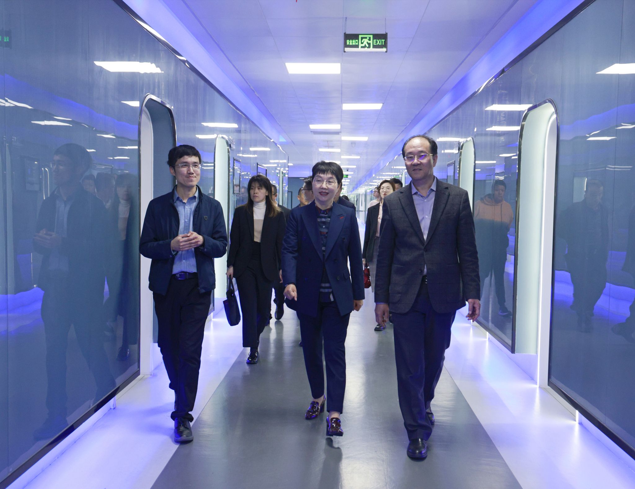 俞紅平一行實地考察了時尚設(shè)計學(xué)院展廳、數(shù)字化教學(xué)空間、教師發(fā)展中心,對學(xué)?,F(xiàn)代化教學(xué)設(shè)施、國際化教學(xué)環(huán)境、多元化育人模式給予高度肯定。