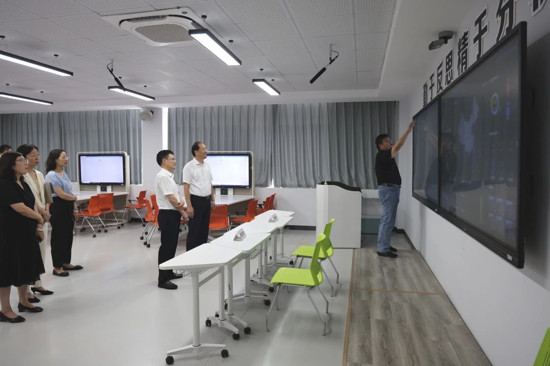 李小平一行實地調研了學校數(shù)字化教學空間、教師發(fā)展中心,參觀了學校舉辦的暑期匠心潤苗班、校史長廊及健身中心等,對學校關心關愛教職工的溫暖舉措、優(yōu)越的教學辦公環(huán)境和先進的教學設備表示高度贊賞。