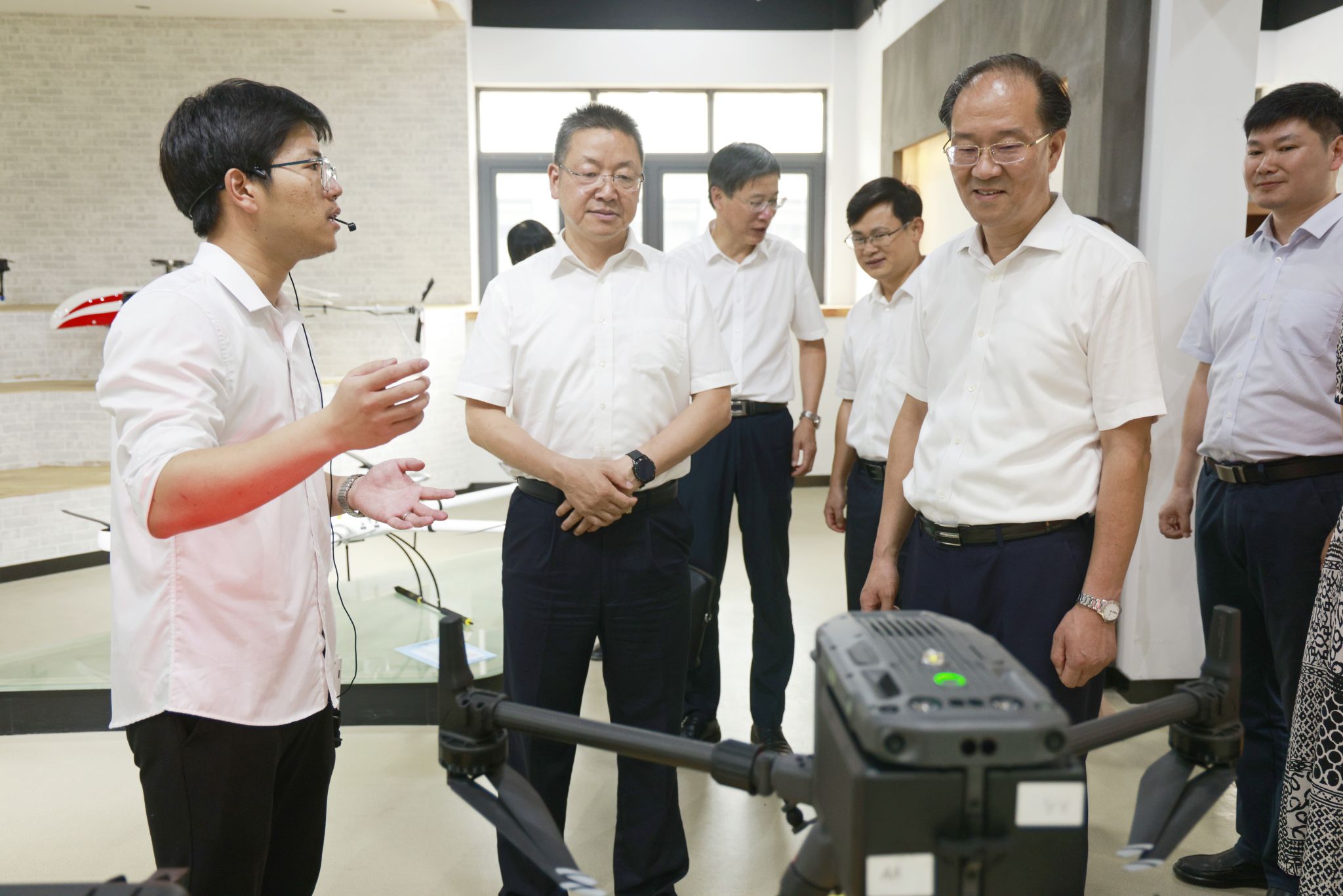 徐鳴陽一行實(shí)地參觀了無人機(jī)協(xié)同創(chuàng)新中心、工業(yè)互聯(lián)網(wǎng)智能產(chǎn)線綜合實(shí)訓(xùn)中心、時(shí)尚設(shè)計(jì)學(xué)院展廳、數(shù)字化教學(xué)空間、教師發(fā)展中心等,與師生深入交流,對(duì)學(xué)校人才培養(yǎng)、技術(shù)創(chuàng)新、校企合作等情況進(jìn)行多方面、多角度了解,對(duì)學(xué)校產(chǎn)教融合高質(zhì)量發(fā)展給予高度評(píng)價(jià)。