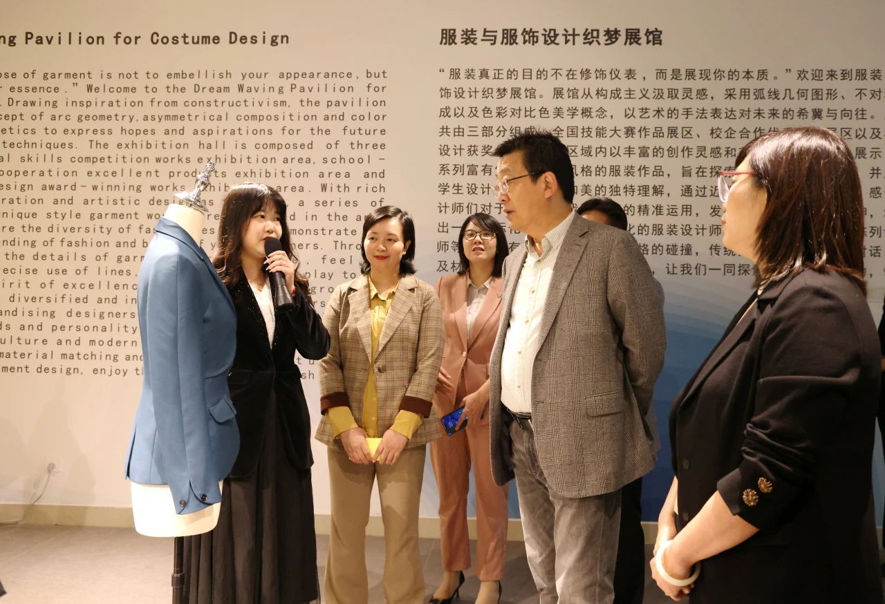 參觀時尚設計學院數(shù)字面料圖書館、藝術設計展示廳、服裝展示廳、衍意高級服裝定制中心,深入了解專業(yè)設置、學生就業(yè)、師生競賽獲獎情況等,指出課程設置要符合職教規(guī)律、充分結合專業(yè)特色,老師要增強數(shù)字化思維,把人工智能等數(shù)字化手段運用到教育教學中;要針對競賽中暴露出來的問題針對性開展教學培訓,以賽促教、以賽促學、以賽促訓。
