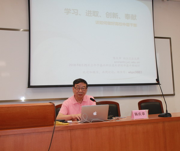 隨后接下來的兩天半時(shí)間內(nèi),暑期讀書會(huì)給中層干部們安排了五大專題學(xué)習(xí),分別是:浙江工業(yè)大學(xué)陳慶章教授的“學(xué)習(xí),進(jìn)取,創(chuàng)新,奉獻(xiàn)——談如何做好高校中層干部”、浙江省委黨校邱巍教授的“加強(qiáng)政治建設(shè),清廉浙江解讀——省委十四屆三次全會(huì)精神學(xué)習(xí)”、嘉興市委黨校輿情研究中心主任洪和根的“‘八八戰(zhàn)略’與習(xí)近平新時(shí)代中國特色社會(huì)主義思想”、常州工程職業(yè)技術(shù)學(xué)院副院長洪霄的“內(nèi)部質(zhì)量監(jiān)控與信息化管理”、江蘇科技大學(xué)南徐學(xué)院杜蘇教授的“高校中層干部的領(lǐng)導(dǎo)力與執(zhí)行力”。期間,學(xué)院領(lǐng)導(dǎo)干部在聽取部門處室匯報(bào)交流的基礎(chǔ)上,組織學(xué)校中層干部對三年行動(dòng)計(jì)劃進(jìn)行了集中交流與分組討論。