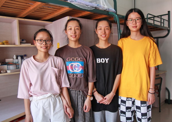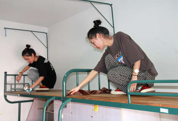 前來(lái)報(bào)到的姐姐周一平(左二)和妹妹周一凡(左三)是一對(duì)可愛(ài)的雙胞胎,她們之前都就讀于嘉善職業(yè)高中工藝美術(shù)專(zhuān)業(yè),姐妹倆同時(shí)考入紡織與藝術(shù)設(shè)計(jì)學(xué)院工業(yè)設(shè)計(jì)181班。2000年出生的姐妹倆酷愛(ài)藝術(shù),動(dòng)手能力強(qiáng),一進(jìn)寢室就打掃衛(wèi)生,設(shè)計(jì)窗簾,為自己和同學(xué)營(yíng)造文明溫馨的學(xué)習(xí)生活環(huán)境。