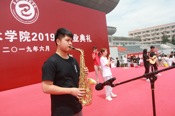 “以后再也聽不到上課的鈴聲啦,但你要記得按時(shí)上班;以后再也沒有了門禁時(shí)間,但你要記得早點(diǎn)回家記得帶鑰匙;用了三年的快遞默認(rèn)地址,你一定得記得修改;以后再也遇不到嘉職院的減速帶了,但你要記得注意出行安全;以后再也吃不到嘉職的食堂了,但你要記得按時(shí)吃飯……”,筵席將散,團(tuán)學(xué)干部們走上舞臺(tái)中央,以快閃的方式,載歌載舞,一旁的小伙子彈起了憂傷的吉他,有的吹起了薩克斯。