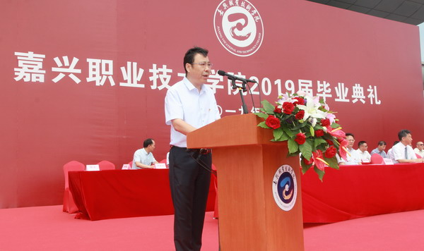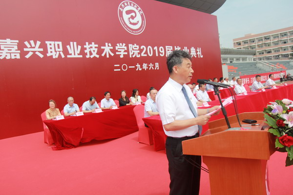 青春如歌,絢爛亮麗?!案兄x同學(xué)們,在最美好的青春年華,選擇了嘉職院。回望三年的大學(xué)生活,在南湖之濱這個(gè)美麗的地方,你們沐浴著紅船旁的春風(fēng)秋月,流連青草園的花開花謝,品味圖書館的文韻飄香,演繹運(yùn)動(dòng)場上的生龍活虎,用你們的青春芳華,溫柔了嘉職的歲月,驚艷了嘉職的時(shí)光?!?月17日上午,在嘉職院田徑場上,黨委副書記、院長趙云在2019屆畢業(yè)典禮上的致辭柔情似水。2900多名畢業(yè)學(xué)子在學(xué)院黨政領(lǐng)導(dǎo)、恩師的共同見證下,拿到了自己的畢業(yè)證書。