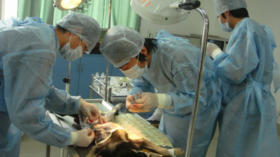 小選手們正緊張進(jìn)行動(dòng)物外科手術(shù)項(xiàng)目比賽