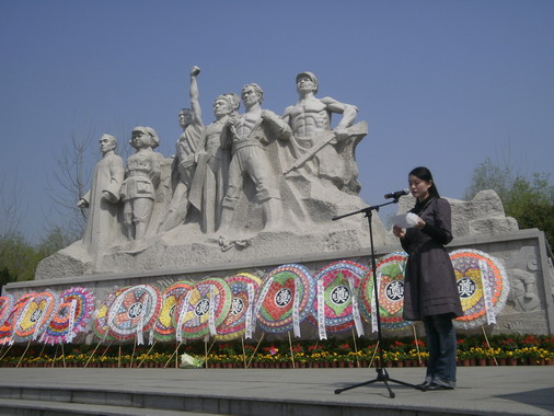 隨后,錢燕婷老師為同學(xué)們作了發(fā)言。她指出,掃墓的意義不僅僅是為了寄托哀思,更是為了激揚(yáng)斗志,只要團(tuán)結(jié)一心、攜手奮進(jìn),祖國的革命事業(yè)就能夠薪火相傳,我們的祖國就能夠不懼怕任何政治風(fēng)浪和經(jīng)濟(jì)沖擊,就能夠在世界民族之林發(fā)揮更重要的作用。錢老師還用兩會(huì)上溫家寶總理答記者問時(shí)一段話與同學(xué)們共勉:“我深深愛著我的國家,沒有一片土地讓我這樣深情和激動(dòng),沒有一條河流讓我這樣沉思和起伏。亦余心之所向兮,雖九死其尤未悔。”她希望同學(xué)們能夠堅(jiān)定共產(chǎn)主義崇高信仰,永不懈怠地對(duì)待學(xué)習(xí)和工作。