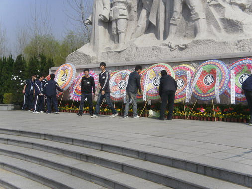 團(tuán)學(xué)干部代表廣大同學(xué)們向烈士敬獻(xiàn)花圈