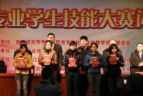 2009年11月20日中午,第二屆全國(guó)高職高專院校染整專業(yè)學(xué)生技能大賽在嘉興職業(yè)技術(shù)學(xué)院圓滿落下了帷幕。來(lái)自全國(guó)19所院校的近百名參賽選手,經(jīng)過(guò)緊張而又激烈的角逐,共產(chǎn)生了5個(gè)一等獎(jiǎng)、15個(gè)二等獎(jiǎng),32個(gè)三等獎(jiǎng),42個(gè)優(yōu)秀獎(jiǎng),30個(gè)優(yōu)秀指導(dǎo)教師獎(jiǎng),1個(gè)團(tuán)隊(duì)優(yōu)勝獎(jiǎng),2個(gè)團(tuán)隊(duì)組織獎(jiǎng)。