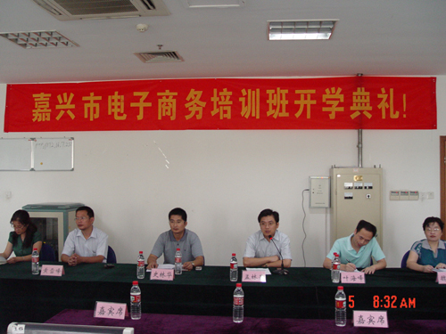 9月5日上午8點(diǎn),嘉興市2009年第一期電子商務(wù)員培訓(xùn)開學(xué)典禮在圖文信息中心407舉行。南湖區(qū)三產(chǎn)局副局長(zhǎng)孟林榮、南湖區(qū)人事勞動(dòng)保障局副局長(zhǎng)史林華、嘉興市電子商務(wù)協(xié)會(huì)會(huì)長(zhǎng)葉海峰、學(xué)院科技與產(chǎn)學(xué)合作處處長(zhǎng)黃雪峰、分院書記毛杰及43名學(xué)員參加了這次典禮,典禮由嘉興市電子商務(wù)協(xié)會(huì)秘書長(zhǎng)魏建華主持。
