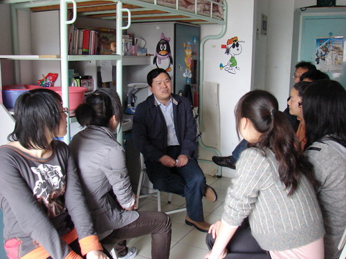 4月7日下午,學(xué)院周建新副院長在外貿(mào)分院領(lǐng)導(dǎo)、班主任和學(xué)生輔導(dǎo)員的陪同下,來到9號公寓樓201寢室進行“黨員干部聯(lián)系寢室”活動。在活動過程中,周院長親切地詢問了同學(xué)們的學(xué)習(xí)、生活情況,并且就同學(xué)們所關(guān)心的學(xué)習(xí)環(huán)境、就業(yè)前景等問題一一做了解答。親切的交談使同學(xué)們倍受鼓舞,同學(xué)們表示將努力學(xué)習(xí),學(xué)好專業(yè)知識,做社會有用之人。周院長也希望同學(xué)們能克服困難、刻苦學(xué)習(xí),在學(xué)好專業(yè)知識同時也要注意思想道德修養(yǎng)的提高。