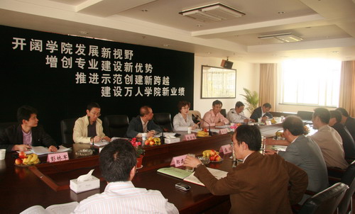 隨后,楊立平部長(zhǎng)一行在1號(hào)樓208室進(jìn)行調(diào)研座談。院黨委書記周奇跡從領(lǐng)導(dǎo)班子“以理論學(xué)習(xí)為先導(dǎo),凝聚共識(shí)、謀劃全局”,“以組織建設(shè)為基礎(chǔ),建設(shè)隊(duì)伍、培養(yǎng)干部”,“以制度建設(shè)為關(guān)鍵,民主團(tuán)結(jié)、科學(xué)決策”,“以作風(fēng)建設(shè)為保障,凝心聚力、推動(dòng)發(fā)展”等幾個(gè)方面,匯報(bào)了學(xué)院領(lǐng)導(dǎo)班子建設(shè)的基本情況;并就學(xué)院學(xué)習(xí)實(shí)踐活動(dòng)以“三進(jìn)三聯(lián)系”為著手點(diǎn),以“開闊學(xué)院發(fā)展新視野,增創(chuàng)專業(yè)建設(shè)新優(yōu)勢(shì),推進(jìn)示范創(chuàng)建新跨越,建設(shè)萬(wàn)人學(xué)院新業(yè)績(jī)”為實(shí)踐載體,開展“理論武裝轉(zhuǎn)觀念”、“解放思想大討論”、“聯(lián)村進(jìn)企謀發(fā)展”、“創(chuàng)先爭(zhēng)優(yōu)促創(chuàng)建”、“固本強(qiáng)基提效能”五大行動(dòng)的基本情況,“寓特色做法于實(shí)踐載體之中”、“融中心工作于特色做法之中”、“聚黨員智慧于中心工作之中”,做實(shí)做優(yōu)做亮學(xué)習(xí)實(shí)踐活動(dòng)的主要做法,以及下一階段的工作打算,向市領(lǐng)導(dǎo)做了詳細(xì)匯報(bào)。學(xué)院領(lǐng)導(dǎo)盛健、周建新、都建明、章康龍分別就主管工作情況和學(xué)習(xí)實(shí)踐科學(xué)發(fā)展觀活動(dòng)開展情況向市領(lǐng)導(dǎo)作了匯報(bào)。