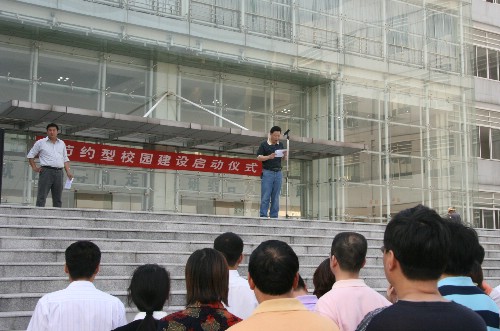 章康龍書記在啟動(dòng)儀式上發(fā)表了講話。他指出,節(jié)約是一種品德,一種精神,一種發(fā)展。堅(jiān)持不懈地做好節(jié)約,不僅展示了一個(gè)人認(rèn)真做事的態(tài)度,而且孕育著高尚的思想道德素質(zhì)。我院目前正處在發(fā)展的關(guān)鍵時(shí)期,示范建設(shè)、二期建設(shè)兩件大事并舉,為此要從多方面厲行節(jié)約:首先,要在基建和大宗物質(zhì)采購(gòu)上厲行節(jié)約;其次要節(jié)約辦公;第三要節(jié)約用水和用電,同時(shí)要做好對(duì)節(jié)約型校園的宣傳和教育工作。