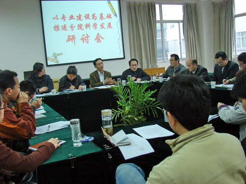 此次研討會圍繞“爭創(chuàng)專業(yè)建設新優(yōu)勢,推進分院科學發(fā)展新跨越”這一主題進行。首先,分院副院長王家慶結合分院科學發(fā)展觀學習實踐活動,進一步轉變發(fā)展觀念,理清分院發(fā)展思路,就如何做好專業(yè)建設、重點課程建設作了介紹,談了看法。隨后與會人員就專業(yè)建設、課程建設、師資隊伍建設、專業(yè)調研、校企合作、社會服務等方面展開了熱烈的討論,大家暢所欲言,紛紛談了自己的看法,提出了意見和建議。