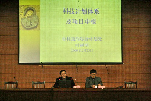 2月25日下午,學(xué)院2009年首場(chǎng)科技報(bào)告會(huì)在院報(bào)告廳隆重舉行??萍寂c產(chǎn)學(xué)合作處邀請(qǐng)了市科技局綜合計(jì)劃處葉樹明處長(zhǎng)為全院教職工作科技項(xiàng)目申報(bào)的指導(dǎo)性報(bào)告。報(bào)告會(huì)由科技與產(chǎn)學(xué)合作處黃雪峰處長(zhǎng)主持。