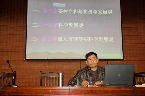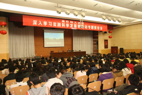 3月12日下午,《嘉職院大講堂》如期舉行,我院宣傳部副部長鄒建良教授為08級同學(xué)作了題為《科學(xué)發(fā)展觀與大學(xué)生思想政治教育》的輔導(dǎo)報告,學(xué)工部副部長王敏堅主持了報告會。報告中,鄒教授從哲學(xué)、教育學(xué)、社會學(xué)的視角圍繞“科學(xué)發(fā)展觀與人的全面發(fā)展,大學(xué)生創(chuàng)新創(chuàng)業(yè)和大學(xué)生成長成才”等問題,闡述了學(xué)習(xí)科學(xué)發(fā)展觀與大學(xué)生思想政治教育的心得體會,報告深入淺出,生動活潑。六百余名學(xué)生、部分班主任及輔導(dǎo)員聆聽了這場報告會。據(jù)悉,2009年《嘉職院大講堂》將進行以深入開展學(xué)習(xí)實踐科學(xué)發(fā)展觀活動為主題的系列講座。