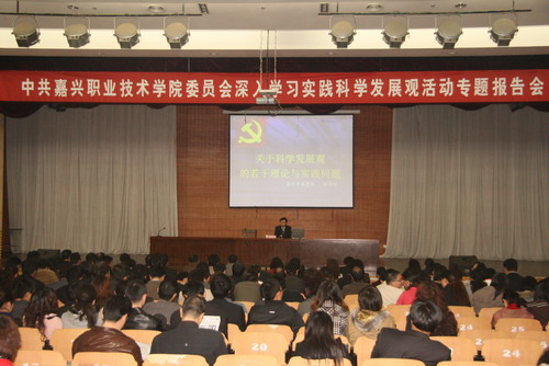 3月18日下午,學(xué)院舉辦深入學(xué)習(xí)實踐科學(xué)發(fā)展觀專題報告會,邀請中共嘉興市委黨校徐連林副教授來院作題為《關(guān)于科學(xué)發(fā)展觀的若干理論與實踐問題》的輔導(dǎo)報告。學(xué)院黨政領(lǐng)導(dǎo)、中層及助理以上干部和全體黨員參加會議。報告會由宣傳部副部長鄒建良主持。