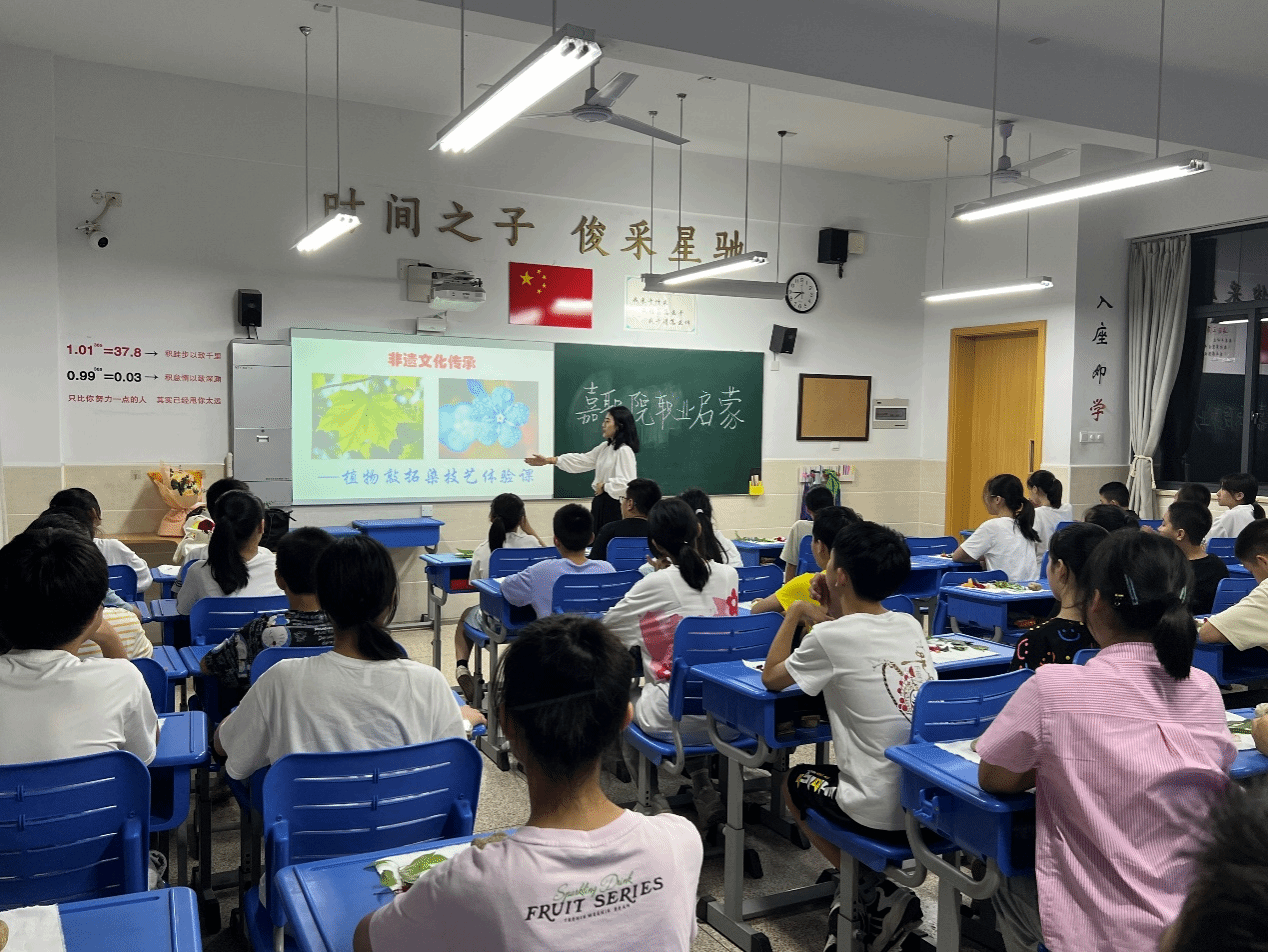 9月9日,嘉職院時(shí)尚設(shè)計(jì)學(xué)院黨總支開展“非遺拓染進(jìn)課堂,創(chuàng)新傳承揚(yáng)國(guó)風(fēng)”主題黨日活動(dòng),組織師生走進(jìn)嘉興一中實(shí)驗(yàn)經(jīng)開學(xué)校,將紡織非遺——“植物敲拓染”帶進(jìn)課堂,進(jìn)行了一場(chǎng)別開生面的傳統(tǒng)文化傳承實(shí)踐活動(dòng)。嘉興一中實(shí)驗(yàn)經(jīng)開學(xué)校近五十名初一學(xué)生參加活動(dòng)。
