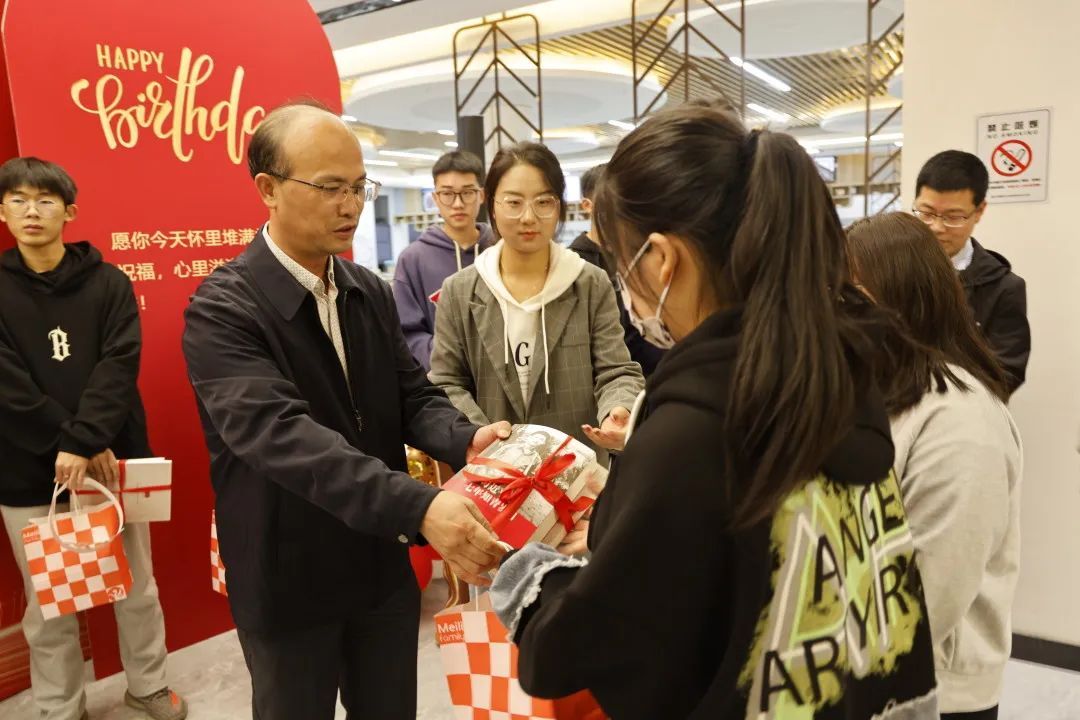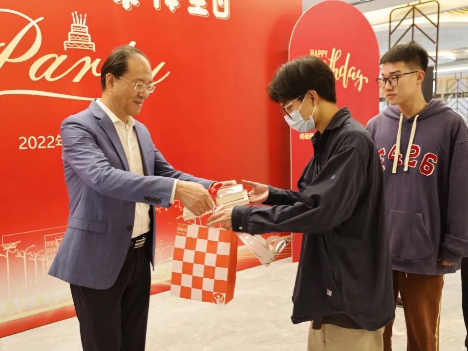 方俊良、楊培強(qiáng)為新生贈(zèng)書和伴手禮,送上生日的美好祝福。
