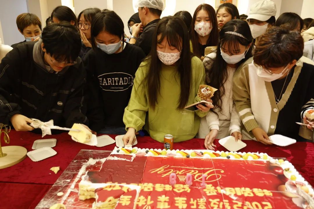 一個(gè)蛋糕象征一個(gè)團(tuán)結(jié)的集體,一支支閃亮的蠟燭像一顆顆跳動(dòng)的心。點(diǎn)蠟燭、許心愿、唱生日歌、分享蛋糕,師生們歡聚一堂,共同分享生日的甜蜜和喜悅,共同翻開學(xué)校蝶變躍升、擴(kuò)容升級(jí),培育新時(shí)代紅船工匠的嶄新篇章。