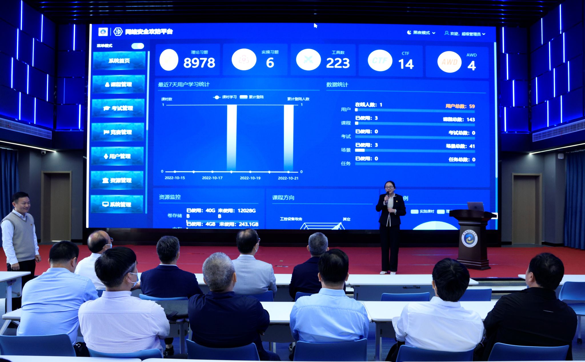 在占地5000多平方、全國(guó)一流的多功能、多類型的數(shù)字化教學(xué)空間,楊必明、張其宏一行檢查教學(xué)設(shè)施等辦學(xué)條件,高度贊揚(yáng)學(xué)校在積極推進(jìn)數(shù)字校園、智慧校園基礎(chǔ)設(shè)施建設(shè)上取得的成效。