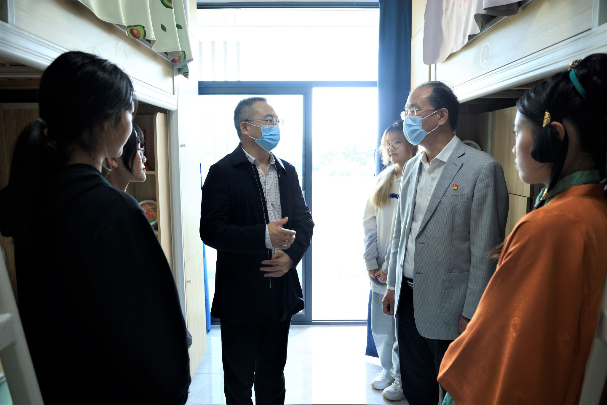楊必明、張其宏一行來到明德公寓,走進(jìn)輔導(dǎo)員工作室、學(xué)生寢室,與師生親切交談,詳細(xì)詢問學(xué)生學(xué)習(xí)生活情況,對(duì)學(xué)校推動(dòng)黨建進(jìn)學(xué)生社區(qū)、積極開展勞動(dòng)教育的做法表示贊賞,高度評(píng)價(jià)學(xué)校為學(xué)生打造的高品質(zhì)生活環(huán)境,指導(dǎo)學(xué)校做好學(xué)生公寓安全管理工作。