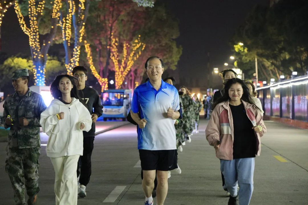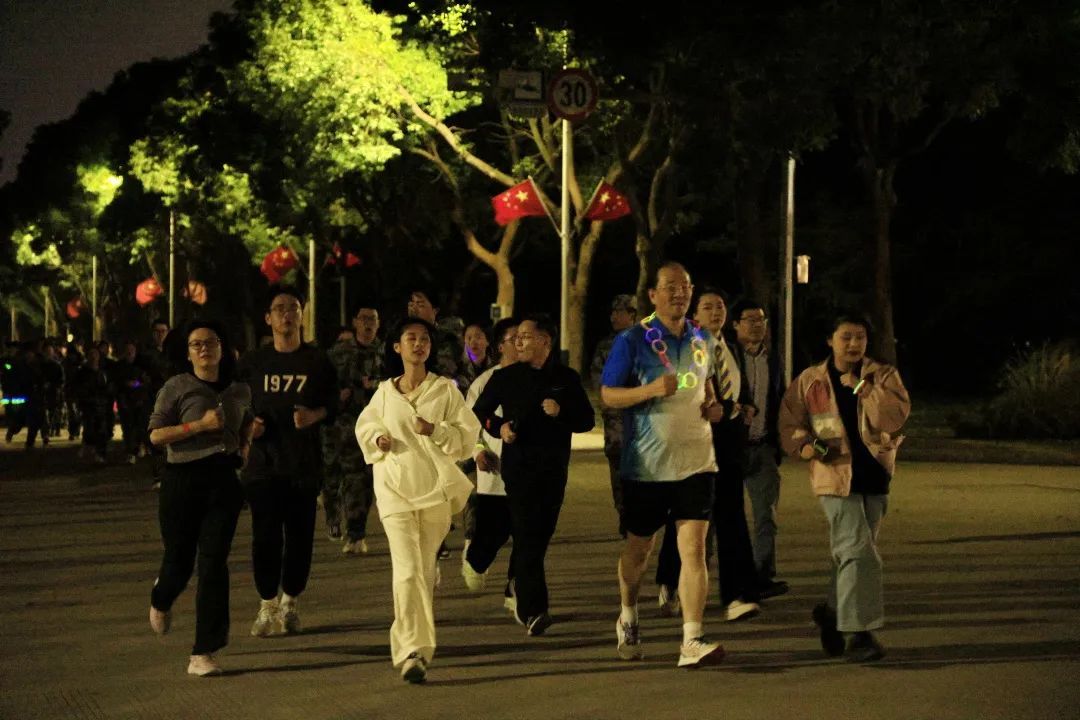 本次活動(dòng)旨在引導(dǎo)學(xué)生“走出宿舍、走下網(wǎng)絡(luò)、走向操場(chǎng)”,提升運(yùn)動(dòng)技能和軍事素養(yǎng),養(yǎng)成終身鍛煉的好習(xí)慣。師生們身著迷彩服、揮舞熒光棒一同出發(fā),近百米的熒光長(zhǎng)龍?jiān)谝股型鹑缫粭l流動(dòng)的星河,每個(gè)人臉上都洋溢著燦爛的笑容,盡情享受著運(yùn)動(dòng)的快樂,成為校園中一道亮麗的風(fēng)景線。