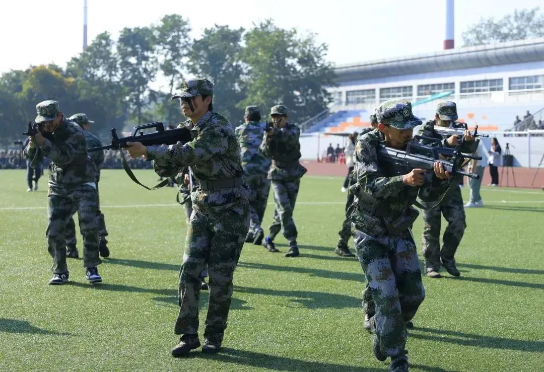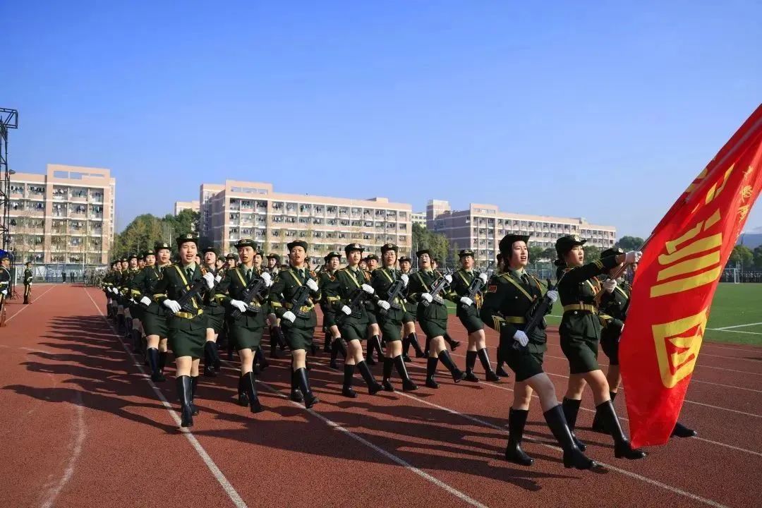 “請黨放心,強(qiáng)國有我!”伴隨著氣勢洪亮的口號,各學(xué)院方陣依次進(jìn)場,受訓(xùn)學(xué)員們以昂揚(yáng)的精神、矯健的軍姿、整齊的步伐,接受全校師生和教官們的檢閱。女兵方陣英姿颯爽、驚艷亮相;戰(zhàn)術(shù)表演強(qiáng)勁有力、氣勢非凡;數(shù)字方陣展示場面震撼、堪比大片,充分彰顯出嘉職青年學(xué)子奮進(jìn)新征程、建功新時代的強(qiáng)烈愿望。