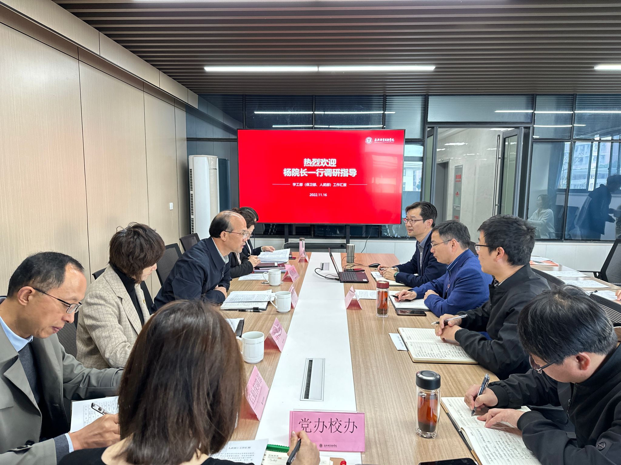 11月16日上午,學校黨委副書記、院長楊培強一行蒞臨學生工作部(保衛(wèi)部、人武部)調研指導,黨委委員、副校長莊應強陪同。
