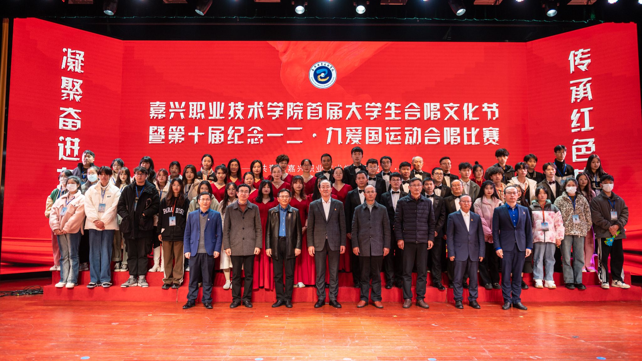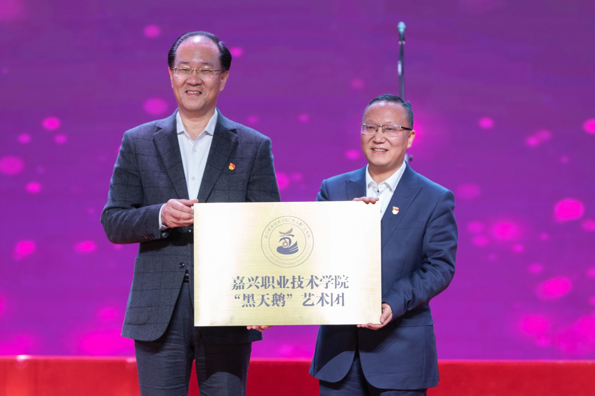 12月9日,嘉職院舉行首屆大學(xué)生合唱文化節(jié)暨第十屆紀(jì)念一二·九愛國運(yùn)動合唱比賽,進(jìn)一步學(xué)習(xí)宣傳貫徹黨的二十大精神,唱響百年華章,傳承紅色經(jīng)典,抒發(fā)愛國深情,營造濃厚校園文化氛圍。學(xué)?!昂谔禊Z”教工合唱團(tuán)和來自校團(tuán)委、各二級學(xué)院的大學(xué)生合唱團(tuán)精彩亮相。黨委書記方俊良,黨委副書記、院長楊培強(qiáng)等校領(lǐng)導(dǎo)為獲獎團(tuán)隊(duì)頒獎?,F(xiàn)場舉行了學(xué)校“黑天鵝”藝術(shù)團(tuán)授牌儀式,方俊良向藝術(shù)團(tuán)團(tuán)長、校黨委委員、副院長項(xiàng)大海授牌。