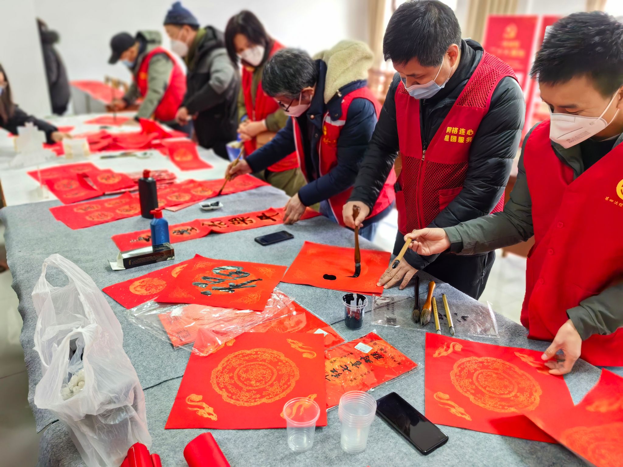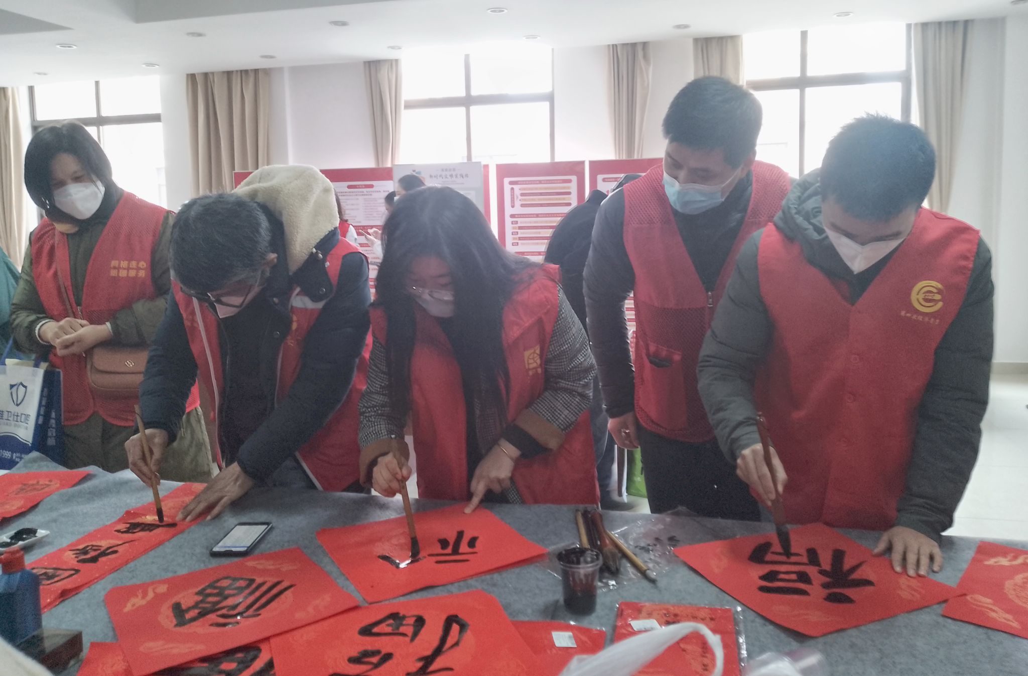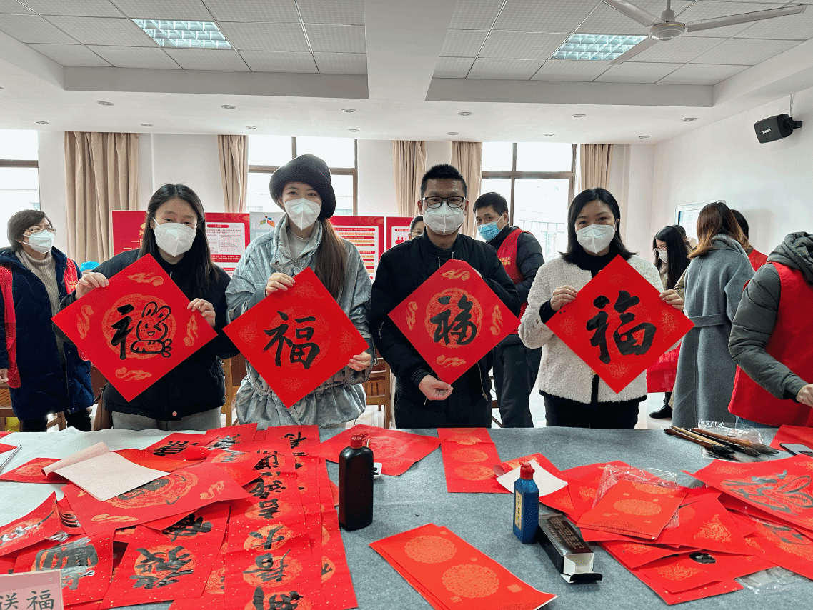 一個個喜慶吉祥的“?!弊謧鬟f著暖暖的新春祝福,為美麗的社區(qū)平添濃濃的春意,活動現(xiàn)場洋溢著歡聲笑語,黨員教師們?yōu)榫用衽砂l(fā)超百幅“?!弊趾痛郝?lián)。