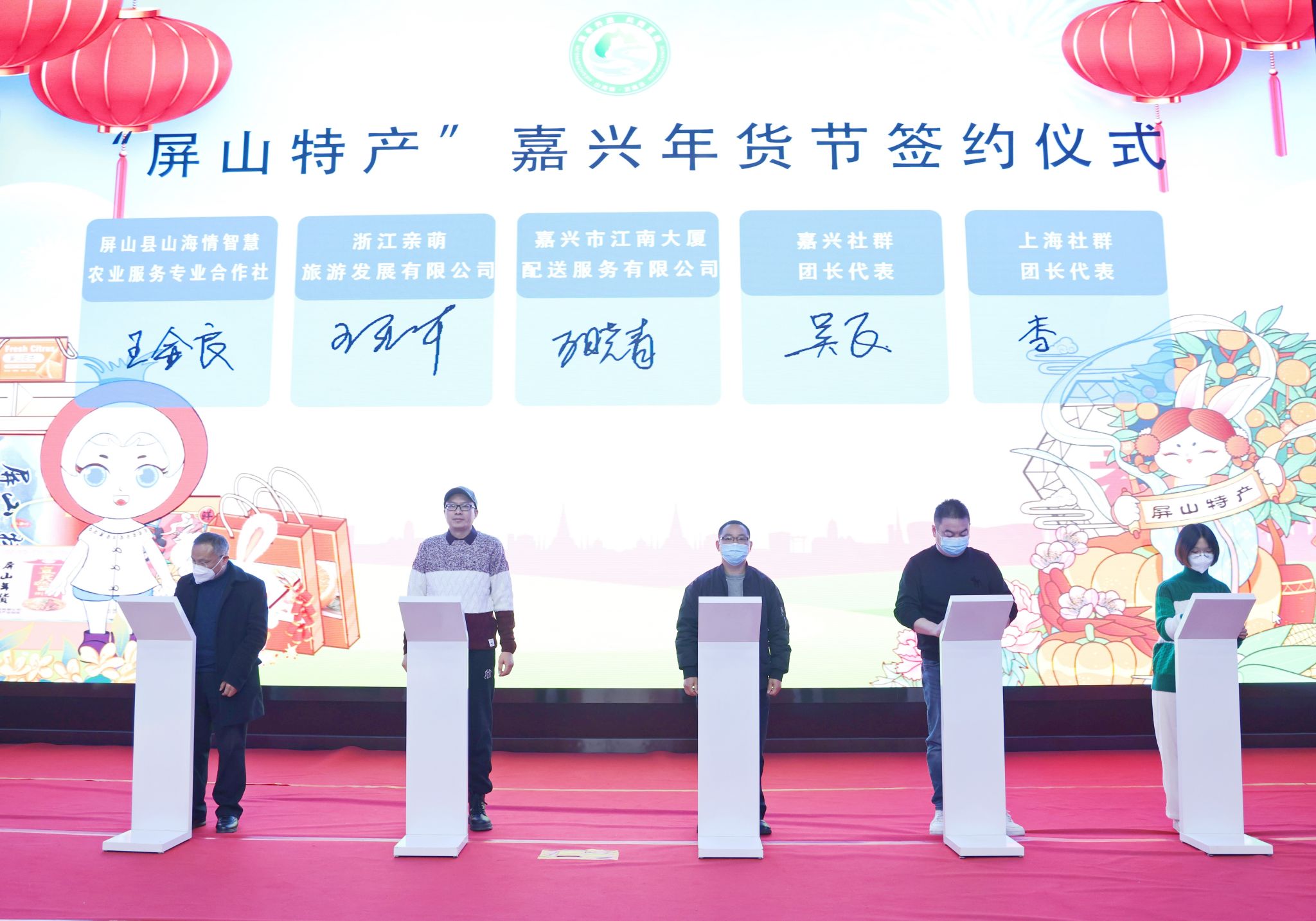 活動現(xiàn)場還舉行了政、行、校、企戰(zhàn)略合作簽約儀式和首屆“四川屏山特產(chǎn)”嘉興年貨節(jié)暨社區(qū)團(tuán)購直播平臺啟動儀式,嘉興市四川商會與屏山縣農(nóng)業(yè)農(nóng)村局,嘉興市水果市場有限公司與屏山縣宇桂農(nóng)業(yè)發(fā)展有限公司,嘉興市江南大廈配送服務(wù)有限公司、浙江親萌旅游發(fā)展有限公司、嘉興社群團(tuán)長代表、上海社群團(tuán)長代表與屏山縣山海情智慧農(nóng)業(yè)服務(wù)專業(yè)合作社雙向?qū)雍灱s。嘉興社群團(tuán)長代表吳飛作為代表發(fā)言。目前,嘉興地區(qū)和上海地區(qū)招募社區(qū)團(tuán)購團(tuán)長數(shù)量已超百位。