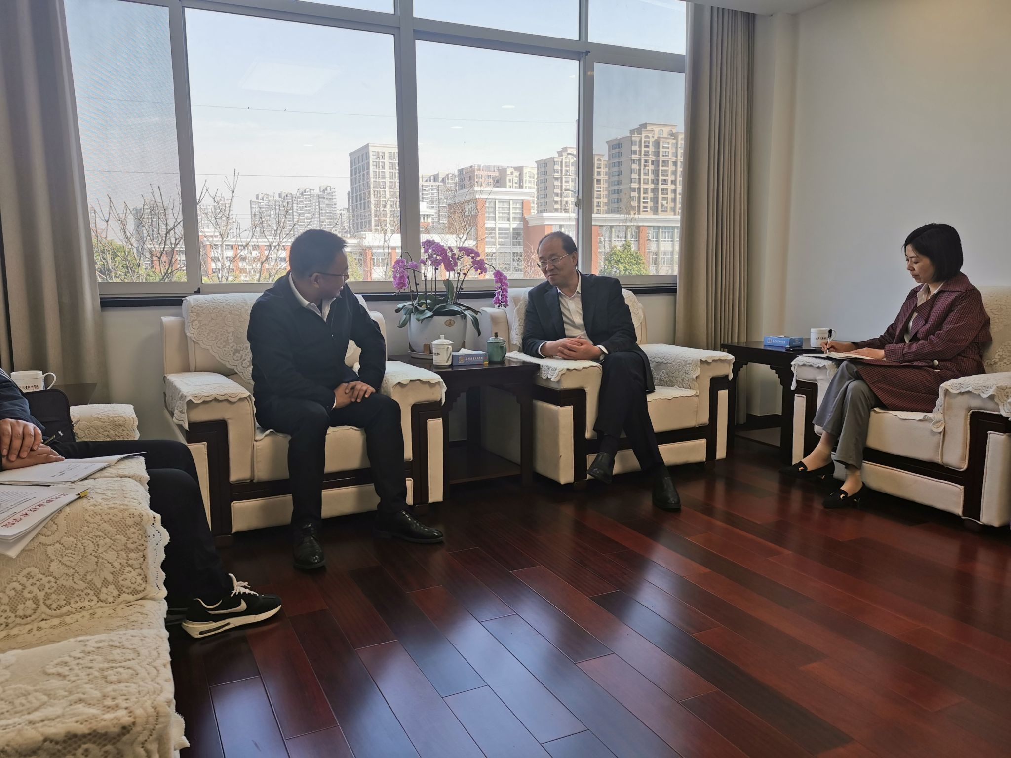 3月15日上午,嘉興市臺辦主任霍忠華一行來到嘉職院調(diào)研交流,黨委書記方俊良接待并進行座談。