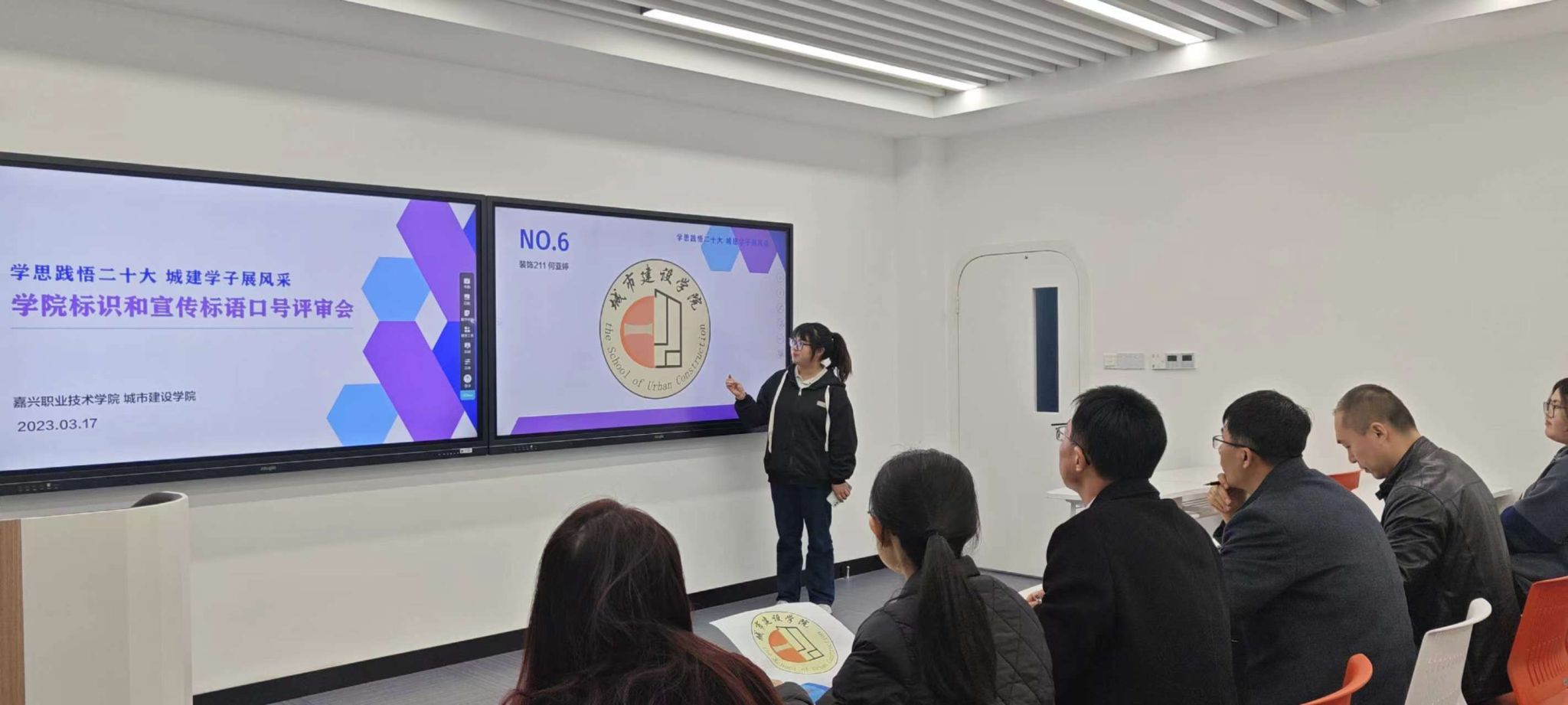 3月17日下午,城市建設(shè)學(xué)院舉行LOGO和宣傳標(biāo)語評(píng)審會(huì),對(duì)通過初評(píng)篩選的11幅作品進(jìn)行最終評(píng)審。11名同學(xué)分別從設(shè)計(jì)理念、美好愿景、意蘊(yùn)內(nèi)涵等各方面對(duì)自己的LOGO設(shè)計(jì)思路進(jìn)行講解,專家評(píng)審小組嚴(yán)格按照公平、公正的原則,注重入圍作品的功能性、識(shí)別性、藝術(shù)性、準(zhǔn)確性、持久性,力求評(píng)選出最具學(xué)院特色的優(yōu)秀作品。