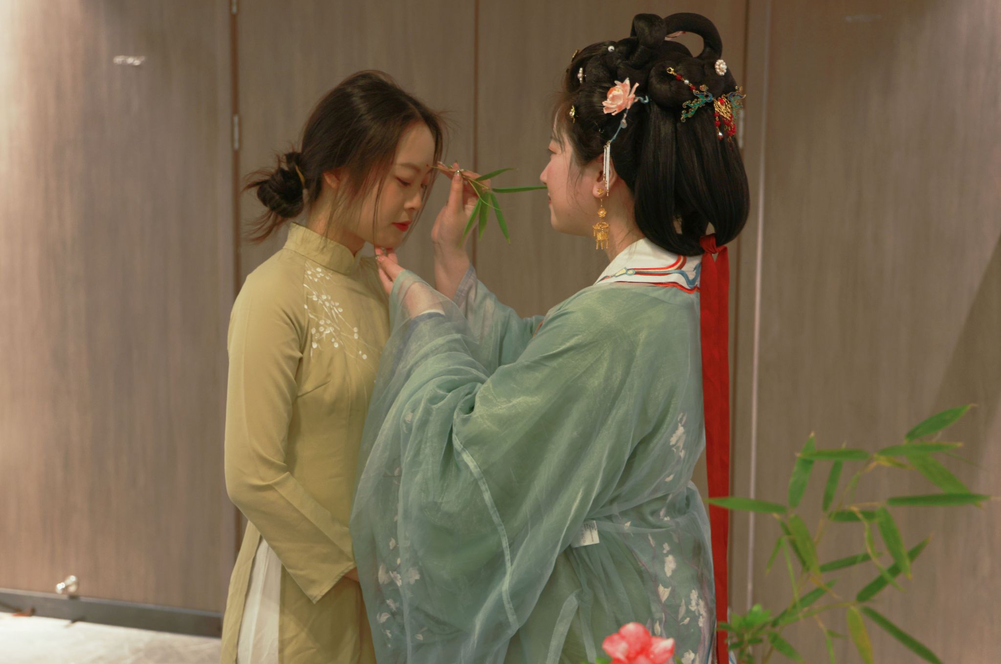 本次活動,學(xué)校工會充分運用高品質(zhì)、高顏值、高內(nèi)涵的智慧酒店綜合實訓(xùn)中心,為到場的各位嘉賓提供交流平臺。生日會以傳統(tǒng)“花朝節(jié)”活動為主題,通過花朝“鈿”妝、宋韻“點”茶、非遺“繭”花制作等特色項目,弘揚中華優(yōu)秀傳統(tǒng)文化,推進(jìn)校園文化建設(shè)?;顒蝇F(xiàn)場,嘉興市“繭花”非遺傳承人面對面為大家展示制作技藝,讓來賓切身感受傳統(tǒng)非遺技藝獨特魅力。每位壽星老師都獲得了一份特別的生日禮物——非遺“繭花”,花香清淡、花型各異。