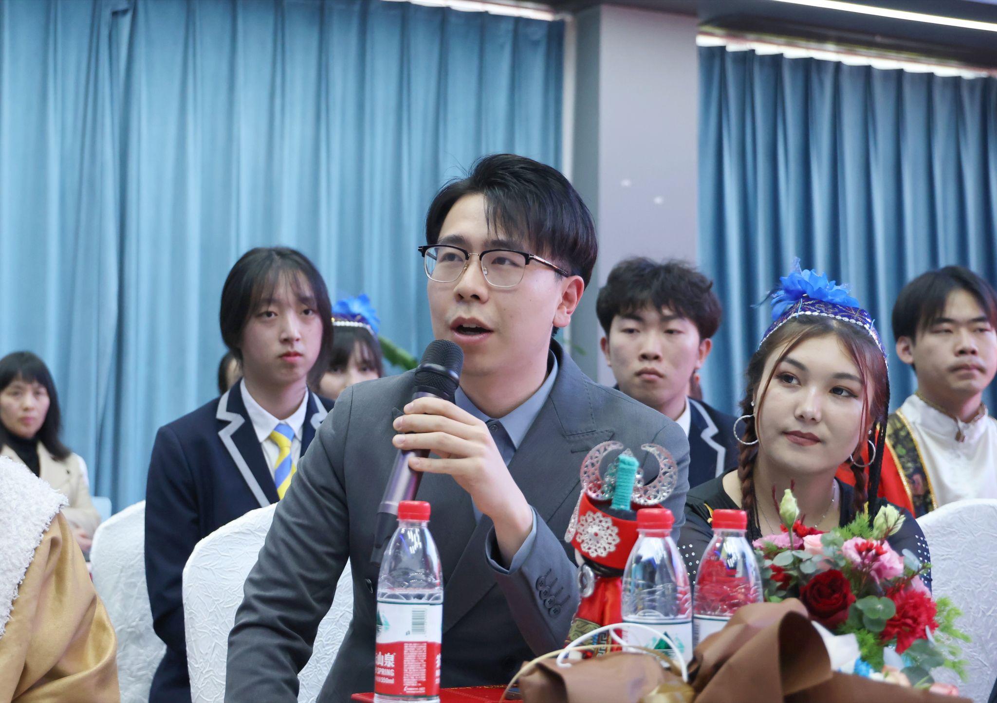 “同學(xué)們,在學(xué)校的學(xué)習(xí)生活大家還習(xí)慣嗎?寒冬時(shí)節(jié)的溫暖大禮包有沒(méi)有收到?食堂的風(fēng)味窗口好不好吃?”方俊良親切詢問(wèn)少數(shù)民族同學(xué)們的在校情況,向大家介紹了近年來(lái)學(xué)校的改革成效和未來(lái)發(fā)展規(guī)劃,與大家暢談人生理想、學(xué)業(yè)發(fā)展和職業(yè)夢(mèng)想。他指出,學(xué)校黨委高度重視少數(shù)民族學(xué)生的教育培養(yǎng)工作,積極促進(jìn)民族團(tuán)結(jié)、文化交融,從教育引導(dǎo)、管理服務(wù)、條件建設(shè)、困難資助和組織保障等多個(gè)方面創(chuàng)新機(jī)制,多途徑、多舉措促進(jìn)民族文化交流交融,為少數(shù)民族學(xué)生身心健康、成長(zhǎng)成才蓄力助航,培養(yǎng)學(xué)生爭(zhēng)做“有理想、有本領(lǐng)、有擔(dān)當(dāng)”的新時(shí)代青年。