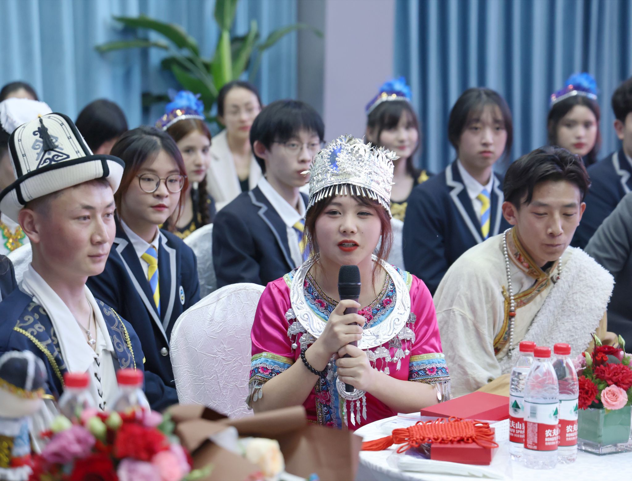 座談交流環(huán)節(jié),同學(xué)們暢談體會(huì)、交流心得,紛紛表示會(huì)像石榴籽一樣緊緊抱在一起,鑄牢中華民族共同體意識(shí),促進(jìn)各民族交往交流交融,在校園內(nèi)傳播好民族特色多元文化,共同創(chuàng)造美好生活。