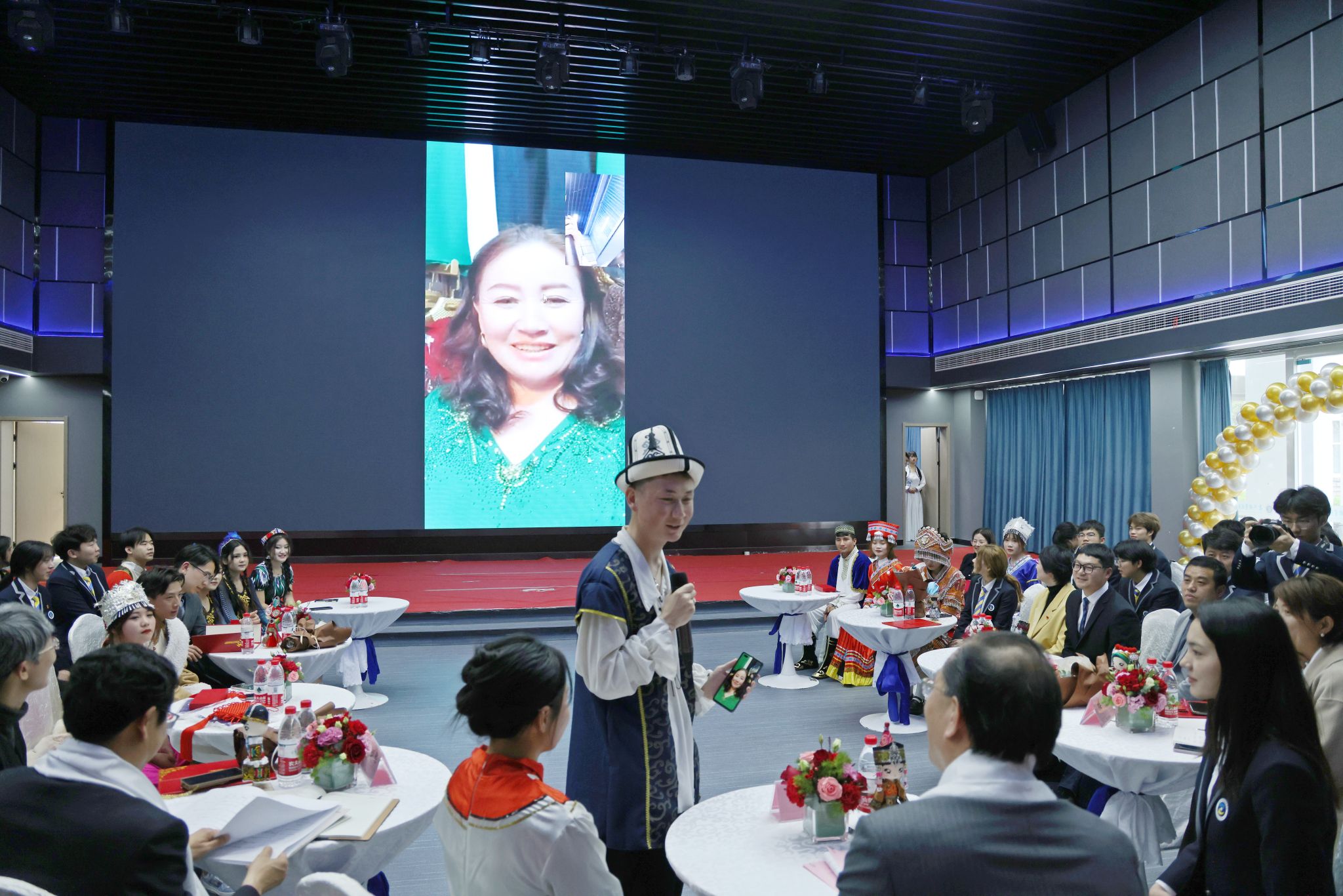 來(lái)自新疆的依熱拉尼別克·艾依達(dá)爾現(xiàn)場(chǎng)與母親視頻連線,將學(xué)校的關(guān)心關(guān)愛(ài)傳遞給千里之外的母親,讓她放心安心。