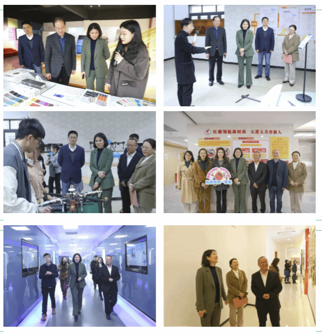 仲建鋒、傅春霞一行實地參觀了學校時尚設計學院展廳、無人機協(xié)同創(chuàng)新中心、工業(yè)互聯(lián)網(wǎng)智能產(chǎn)線綜合實訓中心、明德書院、數(shù)字化教學空間和新落成投入使用的教師發(fā)展中心。
